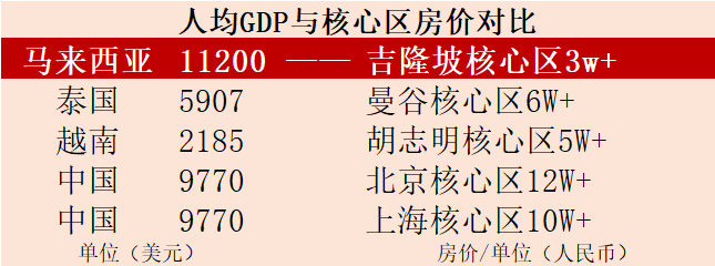 東南亞人均GDP與房價對比