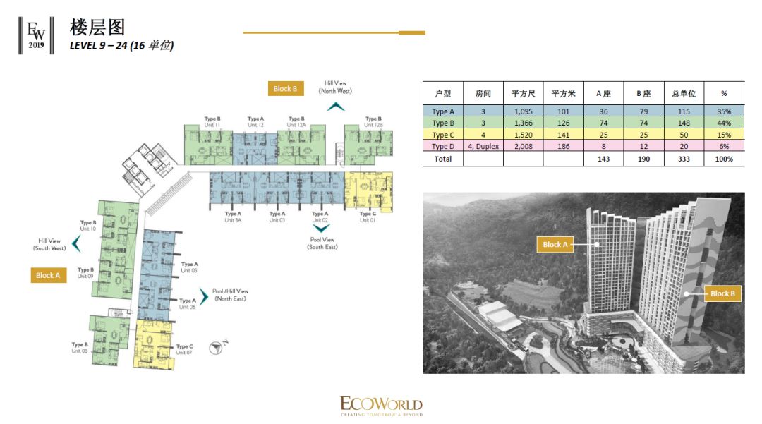 - 只有30%的地勢用於建造333個單位以及70% 綠化環境與措施
