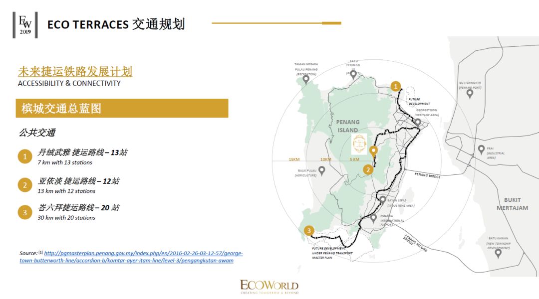 Eco Terraces 位於檳城主要山脈的尾端,風水角度為龍型山末點,並稱為壟尾 (Paya Terubong),更是人口密度發達的地區。 此外,也是靠近著名旅遊景點----非常樂寺,升旗山和萬果之王出產地,浮羅山背。 占地12.79英畝的Eco Terraces。 這項永久地契共管公寓共有333個單位,建築面積從1,095平方尺至2,008平方尺,預計在2020年第2季度完工。